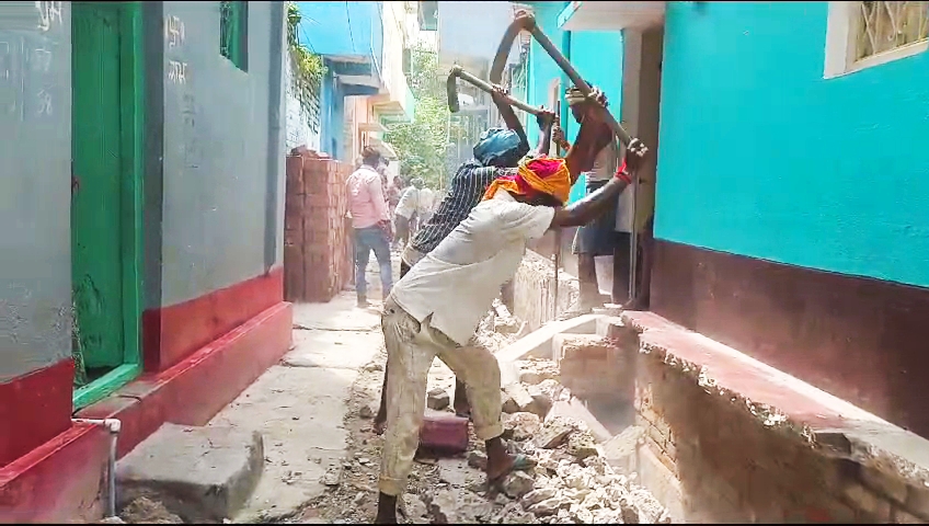 समाजिक कार्यकर्ता के पहल पर गली से हटाया गया अतिक्रमण, देखते रह गये अतिक्रमणकारी