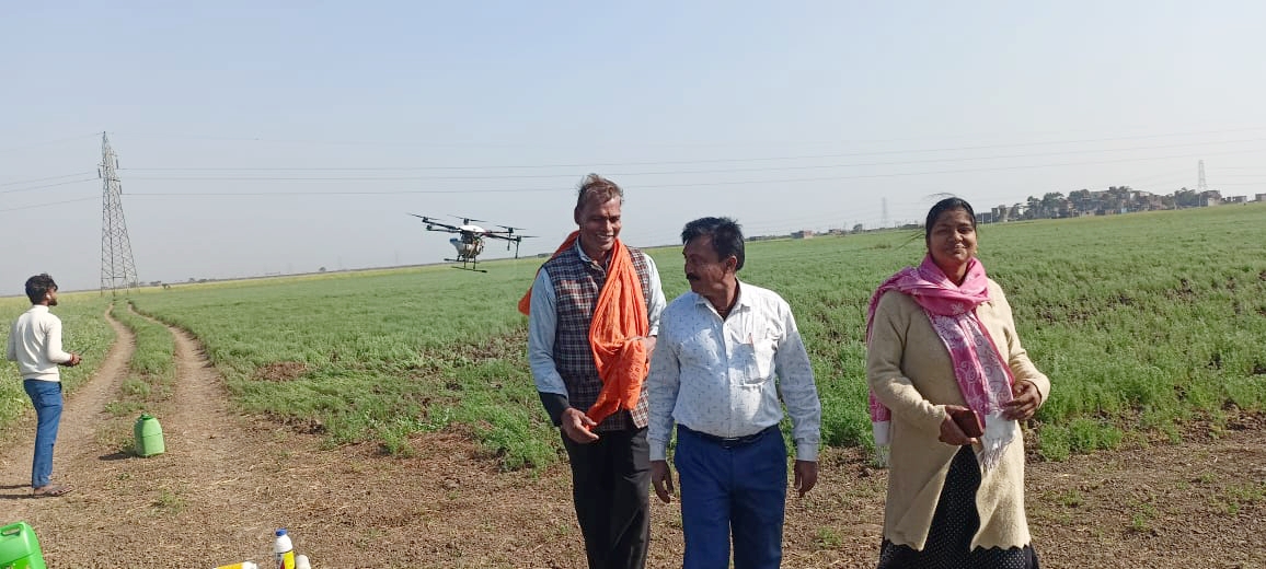 ड्रोन तकनीक से हुआ दवा छिड़काव, जिला कृषि पदाधिकारी ने किया निरीक्षण